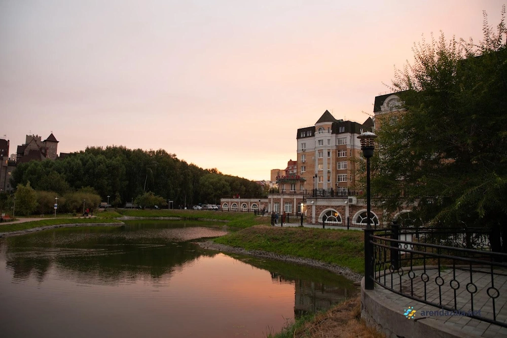 Около озера, в городе